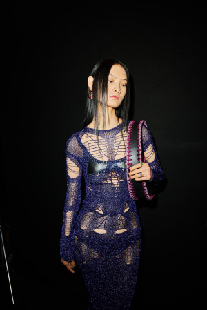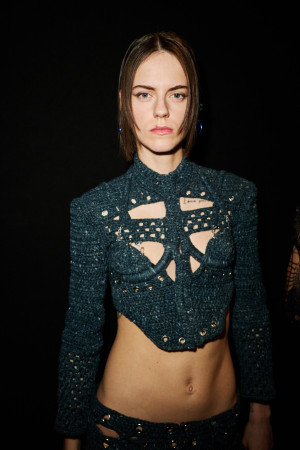 The brand is distinguished not only by its aesthetic but also by its foundational philosophy. Coming from a background in fine arts rather than traditional fashion design, Anaïs embraces an approach that prioritizes uniqueness and artistic expression over conventional wearability. This is vividly reflected in their latest 404 Studio Fall 24 collection, inspired by the anime "Ghost in the Shell," which contemplates themes of sustainability and the futuristic intertwining of humans and technology.