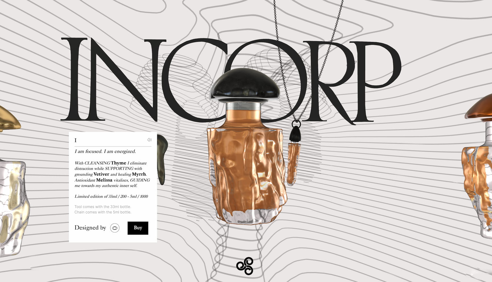 Smell, often described as the sense most directly connected to memory, possesses a unique ability to bridge the gap between our inner selves and the external world. In today's fast-paced world, these intimate connections can easily be lost. INCORP's fragrance line was intentionally designed to bring us back to a present sense of awareness, rekindling the intimate relationship between our senses and our lived experiences.