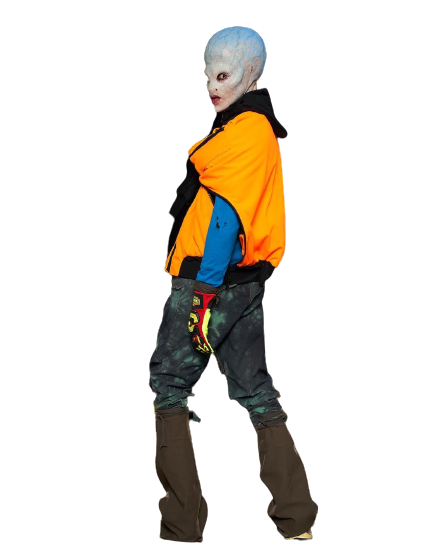 The result was a virtual show set in a place lovingly dubbed “WILLIE WORLD”: the realm of a runway cast with AI-generated aliens who delivered new DNA to the Outlier lore. For IDEAS 5, Willie extruded the digital alien cast of WILLIE WORLD and dressed them for a runway in the physical world.