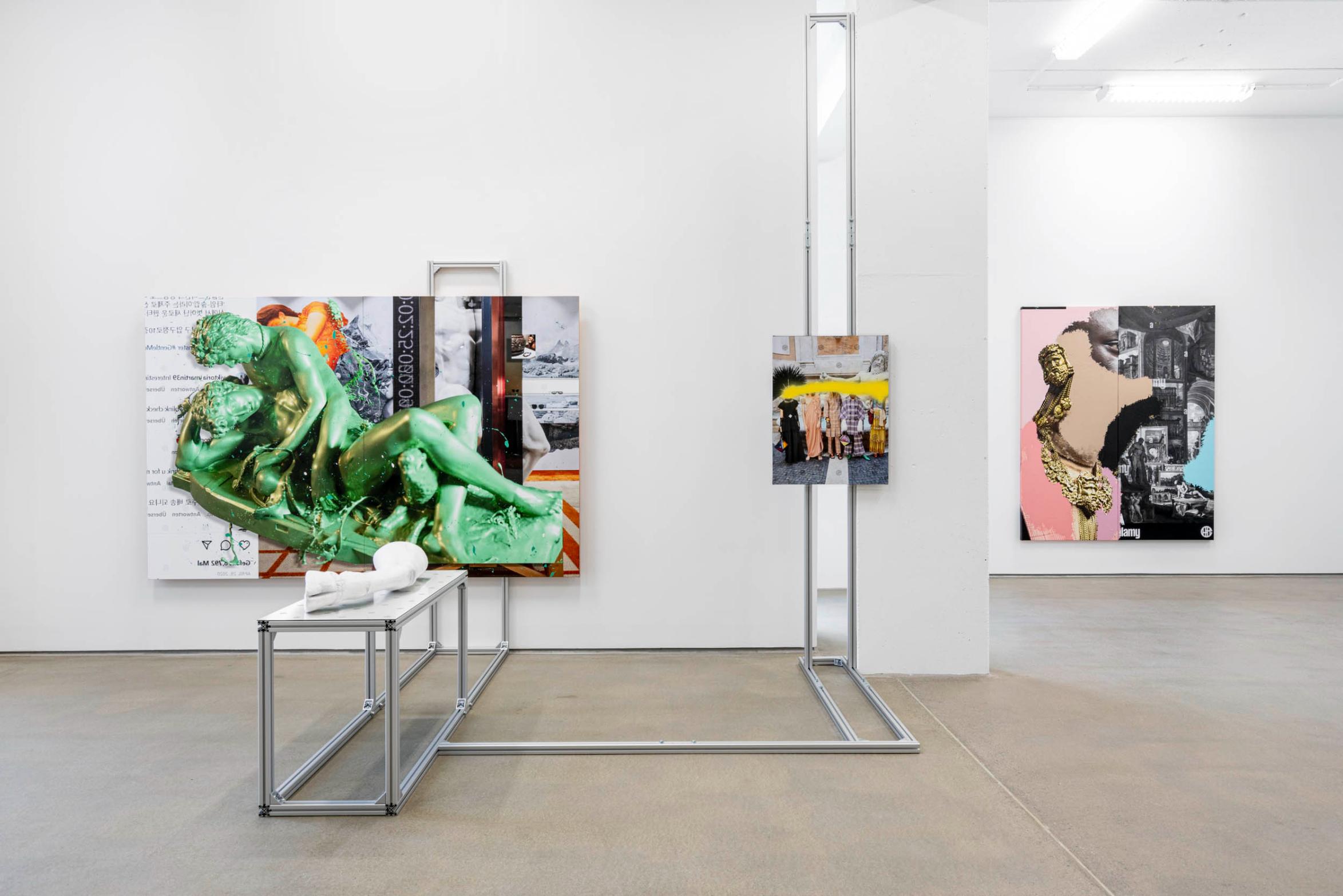 The transition from primarily manual to hybrid production radically expanded my concepts of materiality and spatiality. My process now begins in a virtual studio, where I use simulation and parametric modeling to generate texture, light, and perspective, while reworking 3D objects from commercial databases into new constellations. These digital “proto-objects” are then transferred to physical carriers - such as inkjet prints on canvas - and altered through analog interventions. Materiality becomes a discursive category, mediating between simulated surfaces and tactile presence. Spatiality is defined not only by the object’s physical position, but also by the imprint of its digital prehistory - an “invisible architecture” embedded in the work.