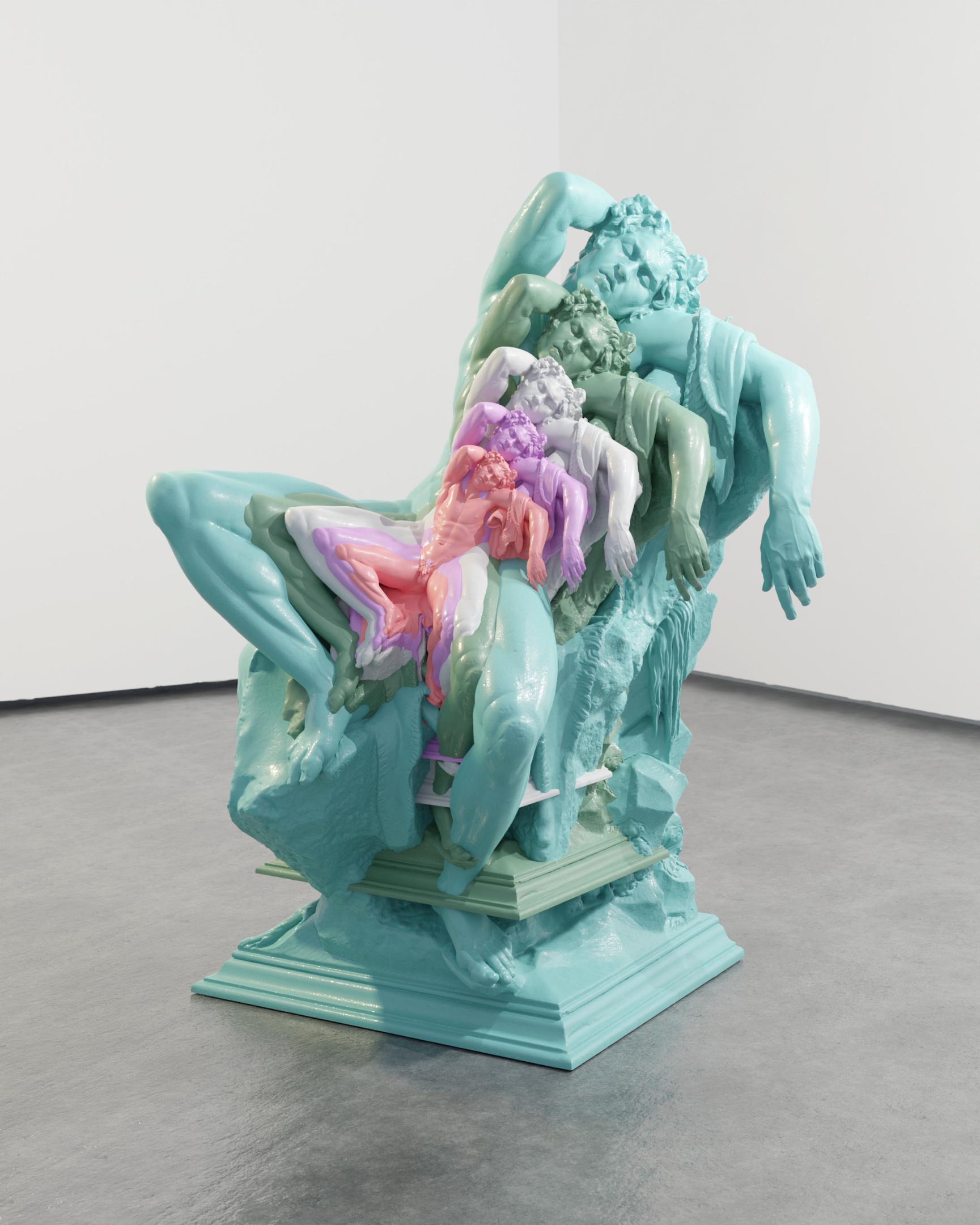 Farnese Bull Reverse (2023) embodies the meeting point between technology and art. Starting from a 3D scan of the Farnese Bull sculpture sourced from an online marketplace, I digitally duplicated, rotated, and finally materialized the piece in sandstone. This layered transformation - from ancient icon to commercial dataset, to digital reconfiguration, and then physical manifestation - echoes Rosalind Krauss’s “post-medium condition,” in which works resist fixed classification within a single medium. The piece questions originality as a genealogical myth, replacing it with an “archaeology of the copy” that positions the viewer in a space between historical reference and simulacrum.