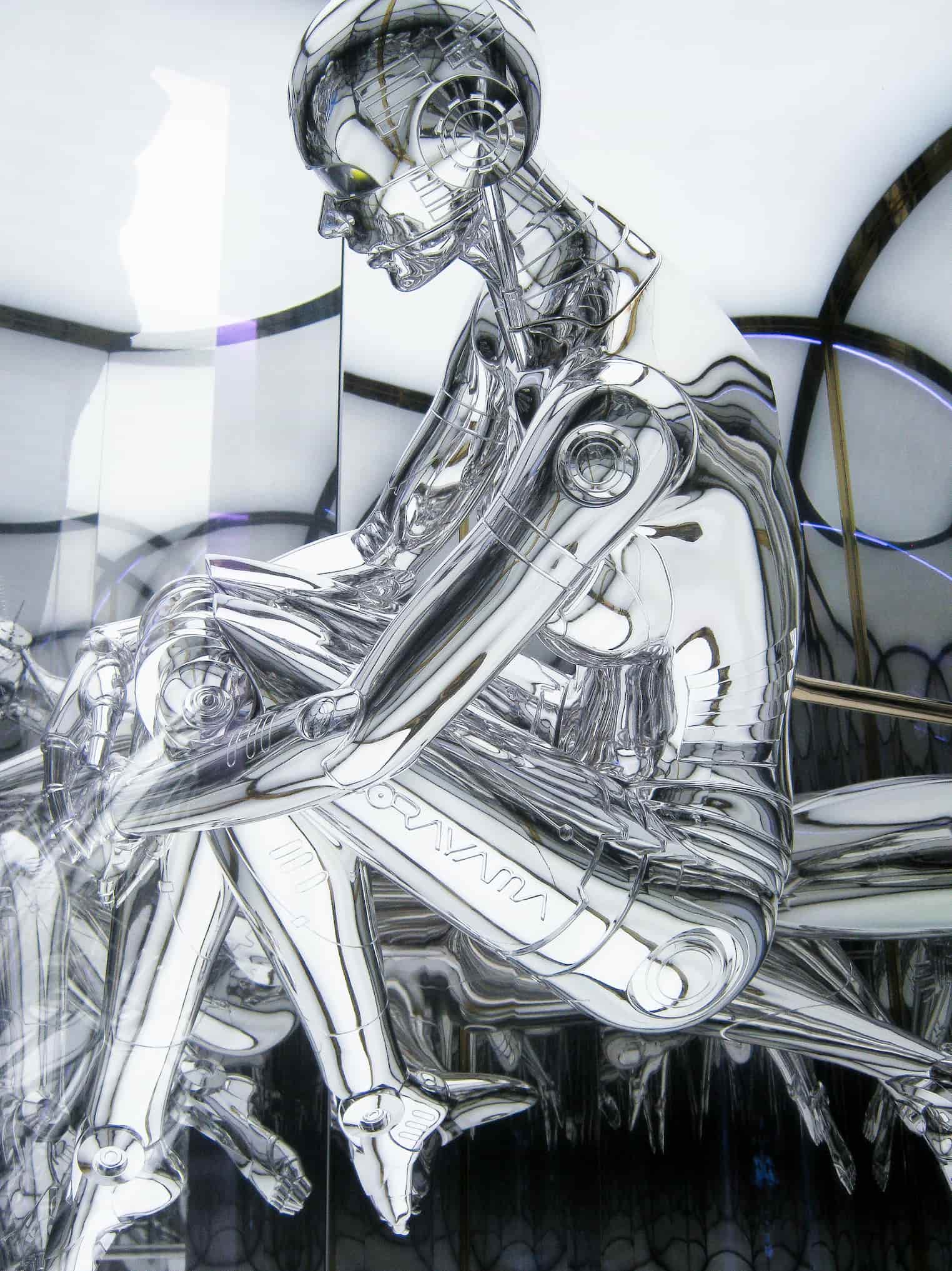 Yet the cultural dimension of his work goes beyond craftsmanship. Beneath the chrome skin of these figures lies a spiritual element: the particular relationship Japanese culture maintains with objects and technology.