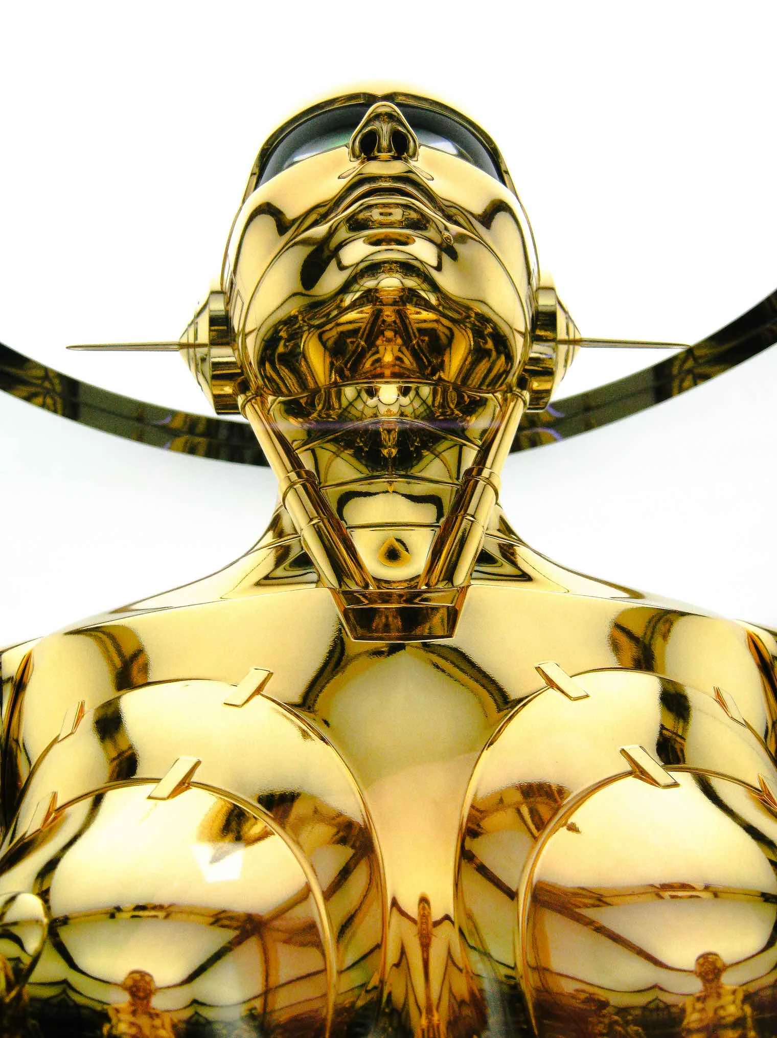 If samurai armor protected the human body, his chromed androids appear to represent a new armor for the body of tomorrow.