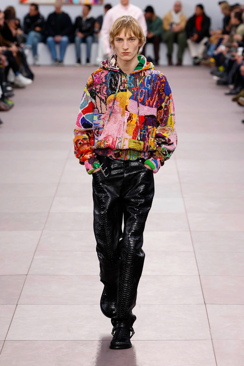 At JW Anderson, the collection evolved into an artistic journey, with graphic floral motifs and paintings adorning garments. The designer seamlessly blended his love for art with his expertise in design, creating a mesmerizing visual experience. MSGM, on the other hand, delved into collaborations with architect Franco Albini and artist Tiago Alexandre, incorporating subway-inspired motifs and motorcycle helmet illustrations into the collection.