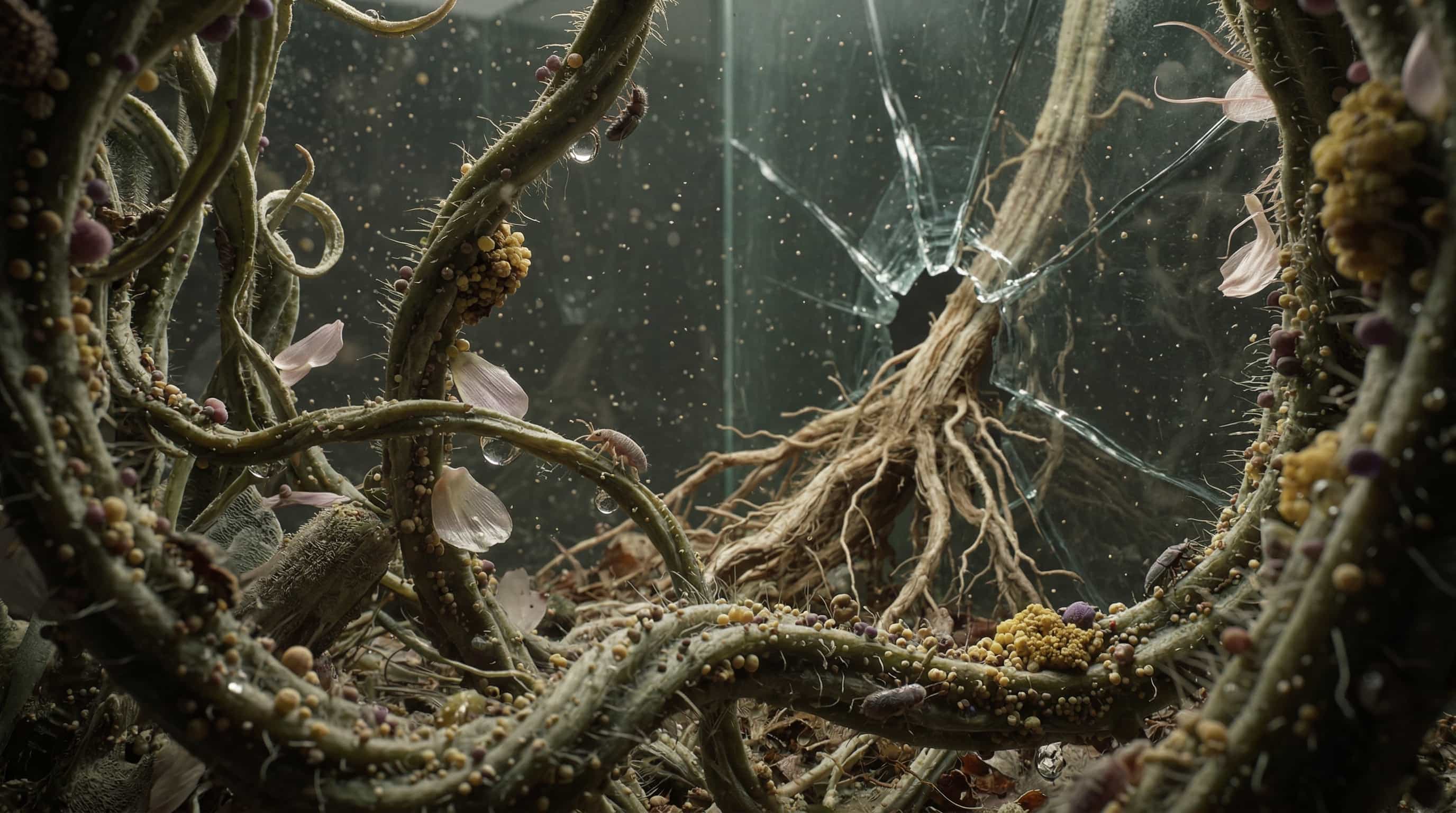 The fingerprints and scratches on the glass introduce a presence. Looking at the work, one has the feeling that someone has already observed closely, touched, tried to approach these organisms.I do not define who this observer is. I am interested in keeping it ambiguous. These traces suggest a relationship, one of care, but also of control. Are we protecting these ecosystems, or are we studying them, manipulating them, perhaps domesticating them? The glass becomes the point where this relationship becomes visible.
