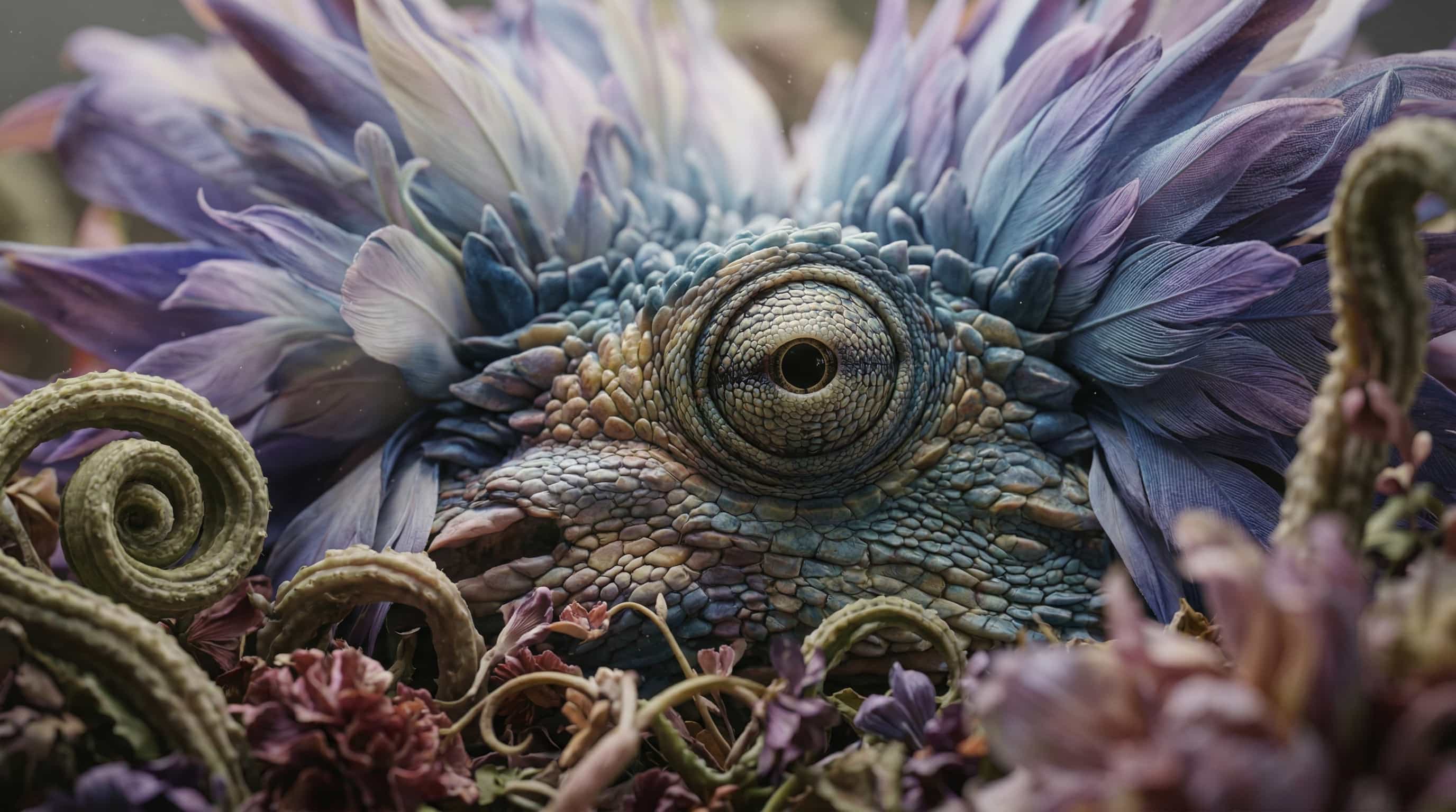 Your works are inhabited by mutant floral forms and hybrid creatures that seem to belong to a kingdom never catalogued. You work with artificial intelligence as a generative tool: to what extent has AI allowed you to "discover" these forms, and to what extent has your own vision guided the process? For you, is this a form of co-creation?