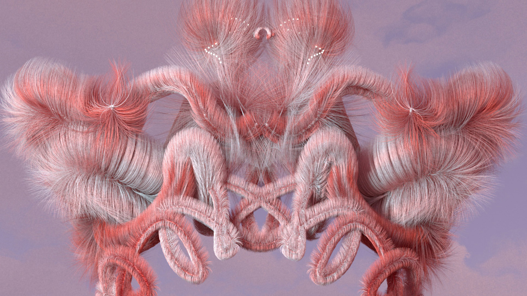 “In our material collection, we created a fantasy world showcasing our digital materials, called Forming Paradise. Our inspiration came from animals such as birds, polar bears, and marine creatures. We were amazed by how their organic bodies becomes their fashion, their feathers, fur, spine and tentacles.” — FORMLESS