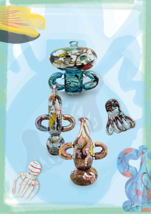 Using the same technic handed down to make murrina vases, the various glass objects are heated and collected by the master in the molten blob of glass, in this way they are inserted into the mass that, once worked and blown, will cause them to twist, turning the vase into a zoo, a kind of fantastic bestiary composed of animals deformed by the same manufacturing process of the material, in Animalier it is the material that decides and creates its own covering.