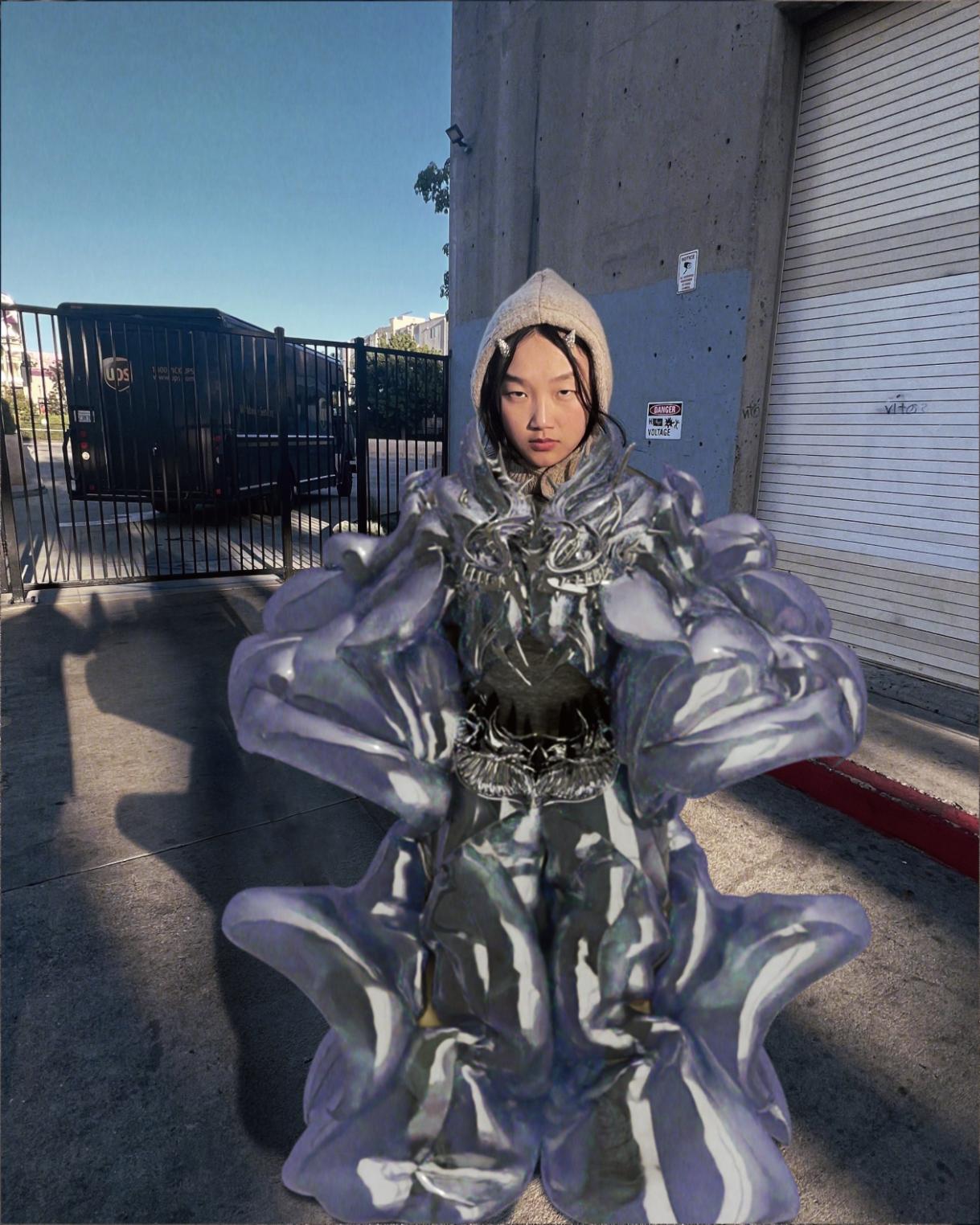 Indeed, “Glamour as Armor” represents a convergence of artistic vision and technological innovation, pushing the boundaries of traditional fashion norms. As SYKY continues to lead the exploration for new forms in fashion, this collaboration with Audrey Nuna signifies a bold step towards a future where self-expression knows no bounds.