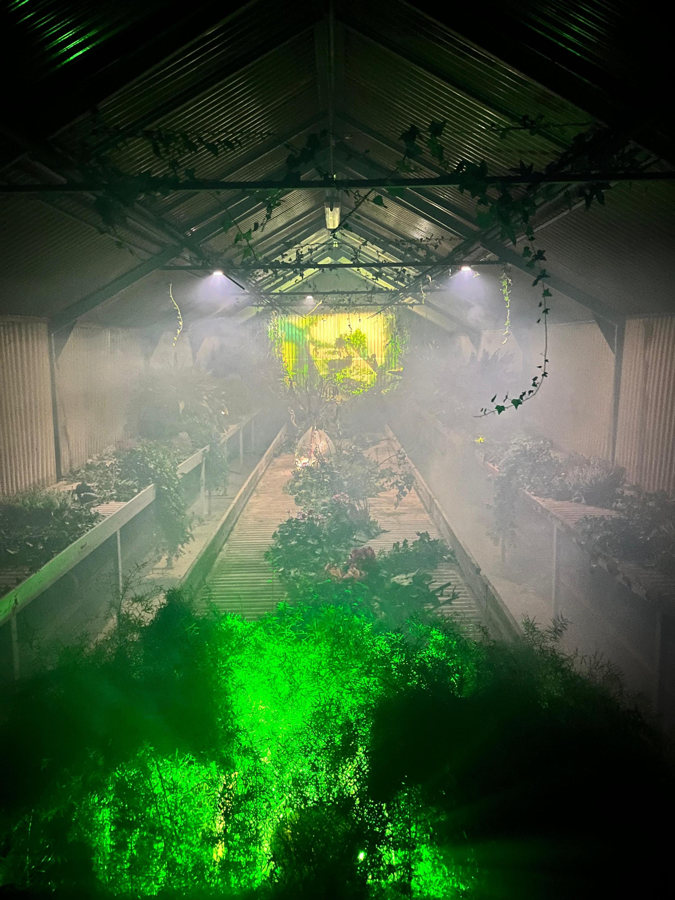 Musician Leo Xyz and Eltanin as their duo band Train to Eltanin, heightened the experience with an ethereal performance. Their atmospheric set reverberated through the greenhouses, melding seamlessly with the exhibition’s trance-like vibe. It was a sonic journey, amplifying the feeling of being caught in a foggy dreamscape, a fitting counterpart to the silent haze that surrounded the mythical castles of the Assassins.
