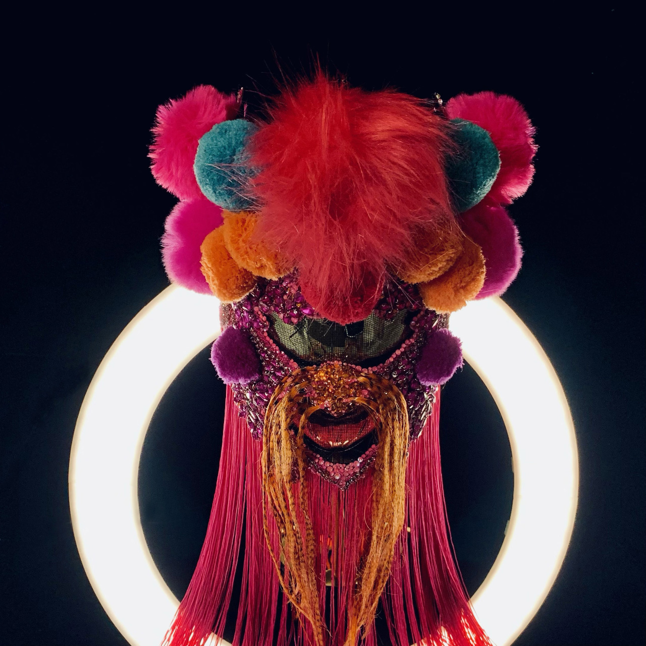 I touched a little bit on that in an earlier question, but it stems from building a universe where all my creatures or “tres bizarre” masks inhabit. Each mask has a backstory and some pieces evolve with each life experience it experiences. For example, Neon Ninja 2.0 mask came from an editorial beauty shoot using silicon fish bait and faux leather face pieces. It morphed into a mask where it grew neon tassels and gold barnacles on the beadwork. It is important to me that my masks live and transform over time as would any creature alive. The first iteration of the mask, when created, can transform according to when it is being used in a photoshoot , a fashion runway, a dance number or exhibited in a gallery. When a collector purchases a mask of mine that is not privately commissioned, they are aware of the history of each piece, the journey it has taken and its final evolution until it belongs to them.