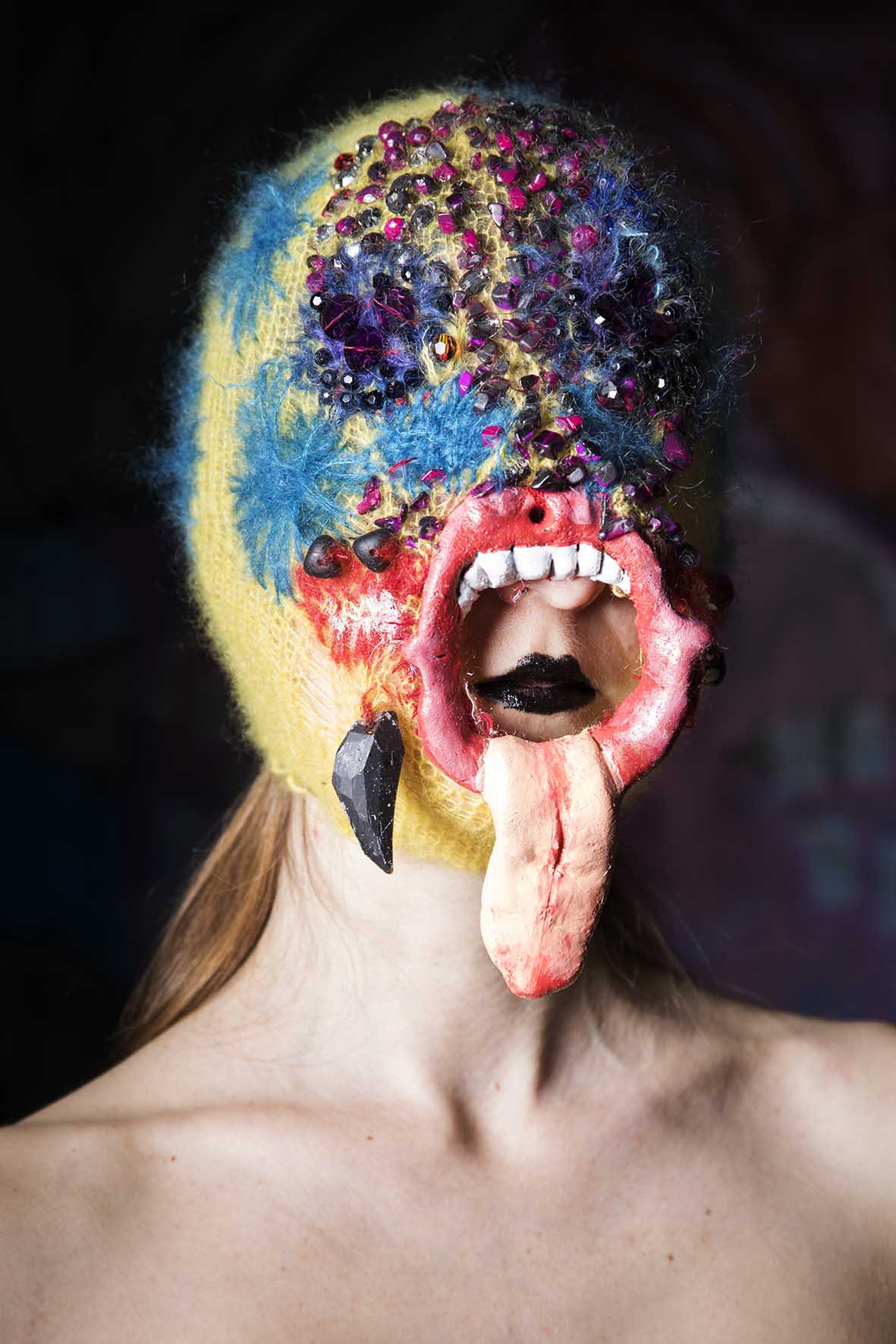 ‘’I paint, create masks, photograph and film myself, visualizing transformation processes. I transform my inner world outward and give voice to emotional turmoil. By wearing masks I express myself on a deeper level and develop works that come directly from my subconscious.’’
