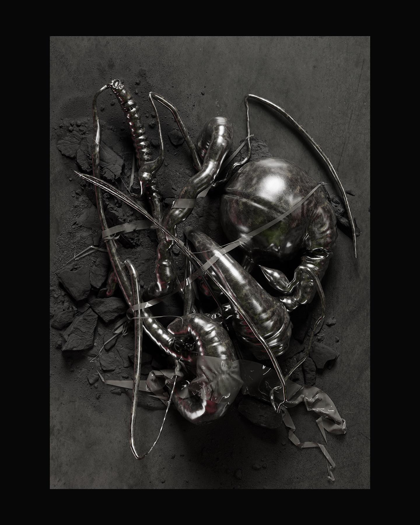 My process for staying updated in these two disciplines is meticulous and always driven by curiosity. Iconstantly search for visual inspiration, exploring artists, galleries, talks, interviews, and tutorials. I enjoyexperimenting with various tools that complement my work. For example, I alternate between C4D, Zbrush,Marvelous, and VR modeling. VR modeling, in particular, has been a revelation; it's a highly interactive andfun process that immerses me more deeply in the act of creating.