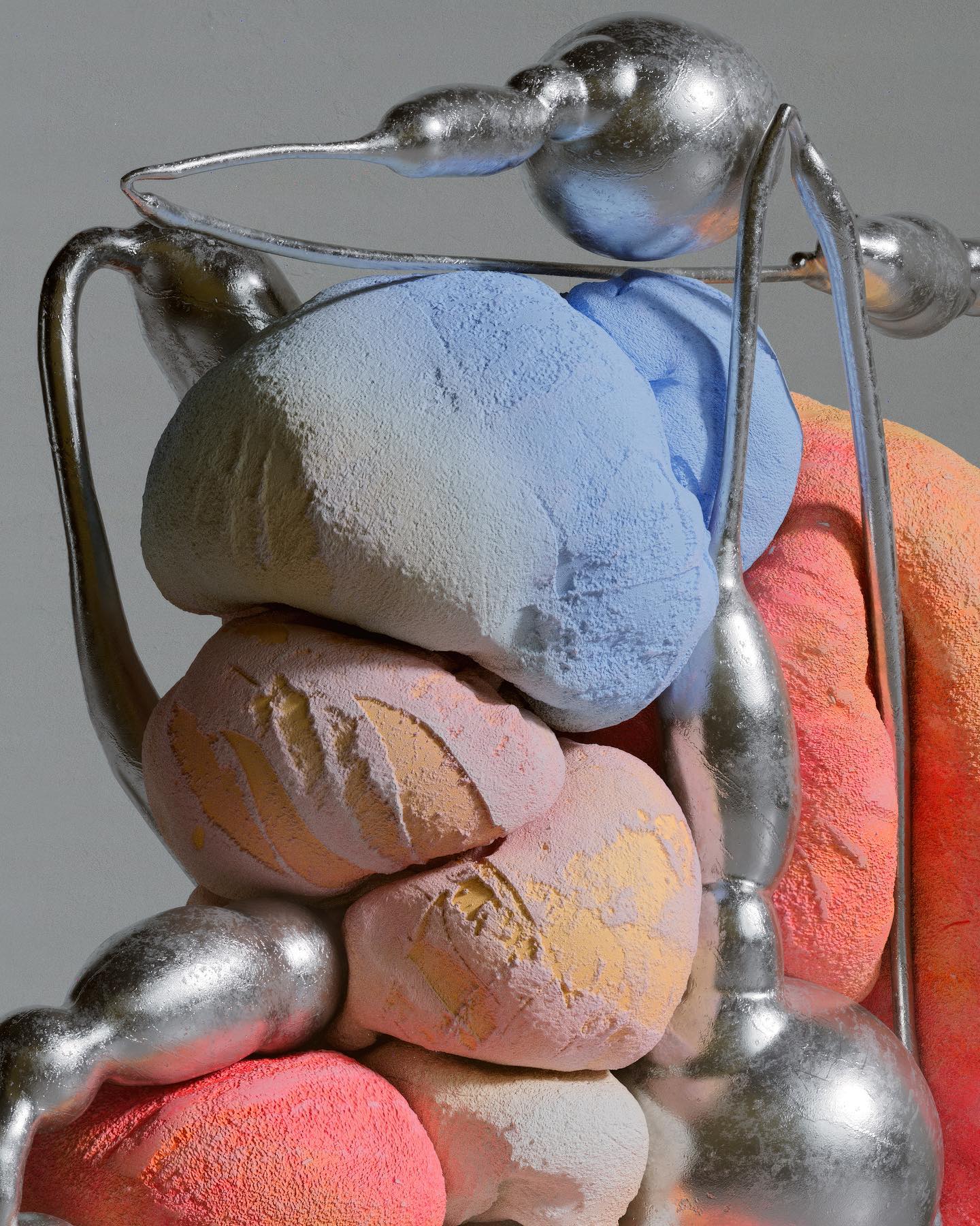 Working in 3D has opened the doors to creating abstract sculptures, where playing with color, texture, and light as a series of visual accidents reflects my emotions and thoughts. Materiality in my work is crucial, as I seek a direct connection with the “real.” I focus on achieving realism in textures to spark discussions about whether they are real objects. Honestly, I don't make profound statements about my art; instead, I let the combination of all these characteristics speak for itself, finding beauty in the unexpected and allowing each piece to be a unique and spontaneous exploration.