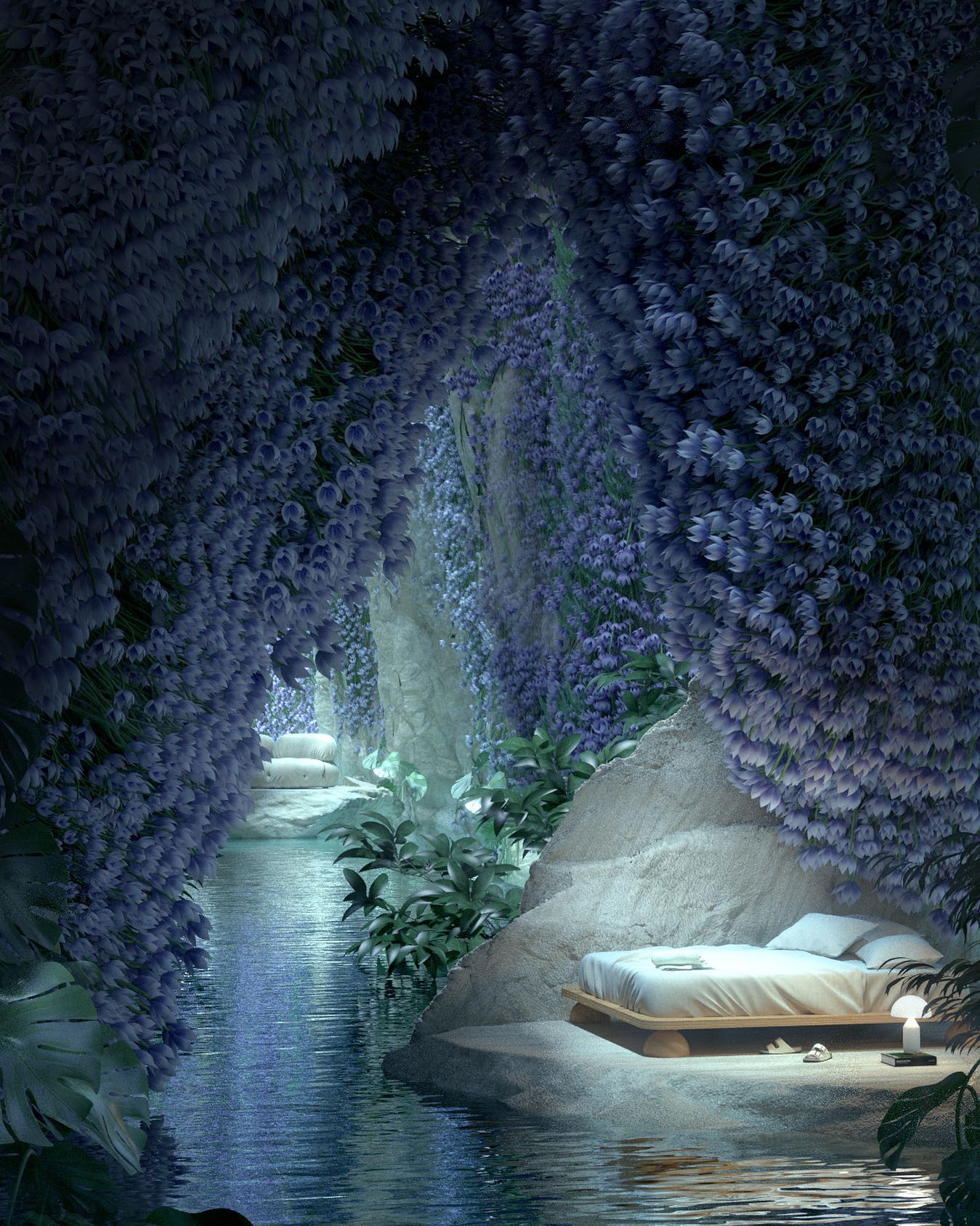 I believe people are drawn to more natural organic places and it’s down to practical reasons that we can’t live in them. I think humans are not meant to live in white boxy rooms! It's just because they’re the most efficient. I try to explore more ways that natural and organic shapes can be designed digitally because, in the real world, they cost so much to make. Designing in 3D without all of those constraints allows 3D artists to experiment a lot more.
