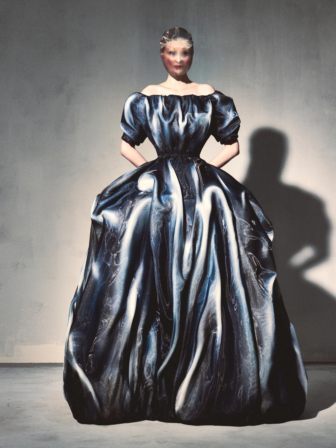 At Maison Margiela Fall/Winter 2026 by Glenn Martens, the house returns to its radical roots, where memory, material, and mutation collide. Staged in Shanghai, the collection merges Artisanal and ready-to-wear in a way that feels both archival and urgently contemporary, echoing the maison’s earliest presentations. The narrative unfolds like a nocturnal Parisian flea market, a space of ritual, decay, and rebirth. Here, garments are not simply worn, they are excavated, reconstructed, and reimagined. Porcelain emerges as a key motif, translated through layered organza or shattered and reassembled directly onto the body, blurring fragility and permanence.