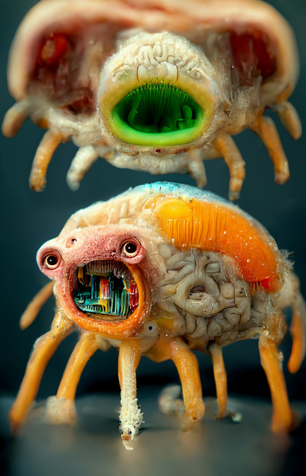 My latest project "Inside the Biocomputer" was inspired by recent advancements in biocomputing and AI. The idea was to imagine what it is like inside the mind of a neural network where connections and patterns exist in a kind of latent space and superposition of possibilities. This was imagined as living hybrids of nature and technology, drawing inspiration from biological imagery such as anatomical structures and nerve cells. I wanted the viewer to wonder at the strange creatures that inhabit this world, and to ponder the implications of a world where nature and technology have become so intertwined.