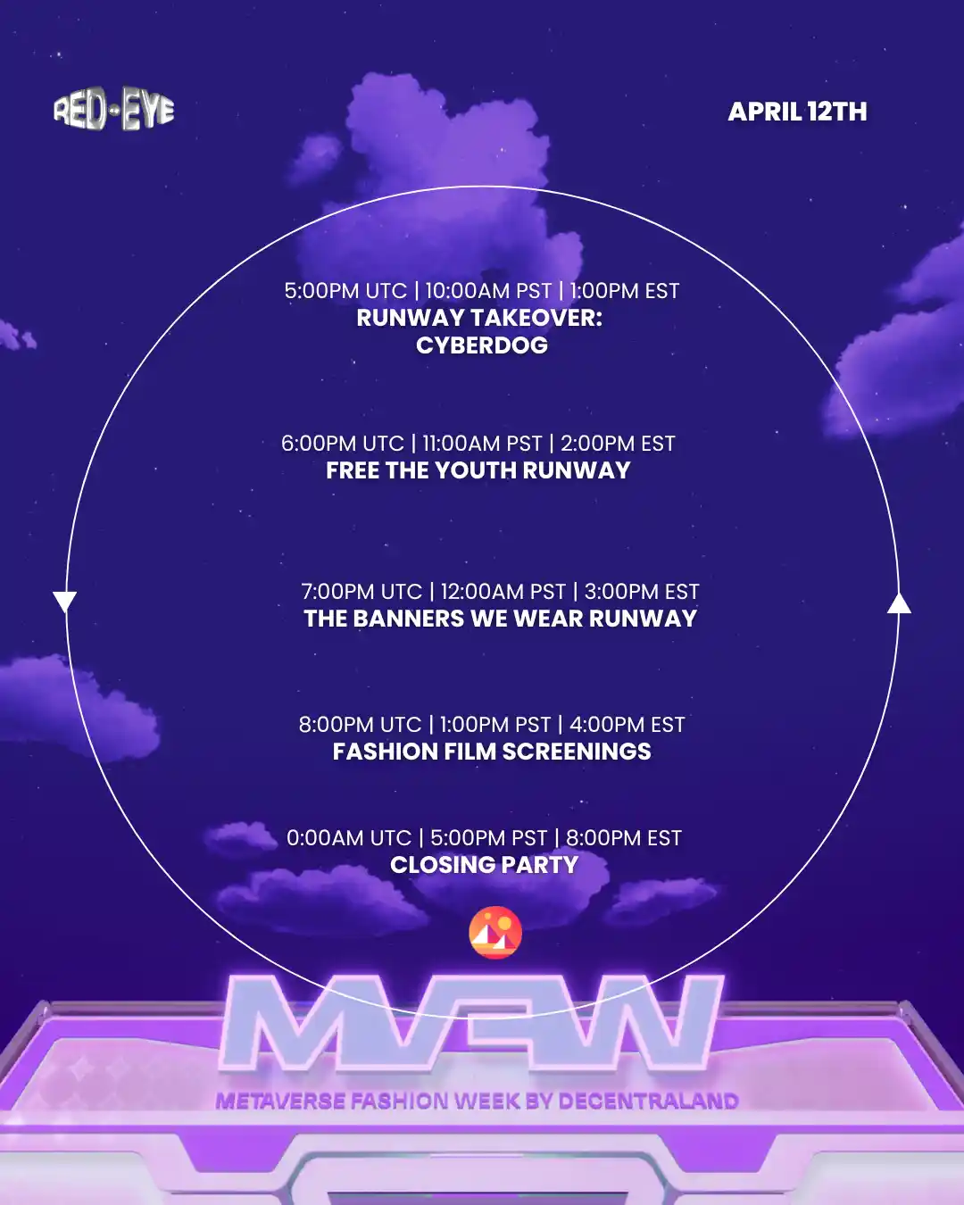 As the clock strikes midnight UTC (0:00am UTC April 13), we'll bring the house down with our epic Closing Party, where attendees can celebrate four incredible days of digital fashion innovation. This final celebration promises special surprises, exclusive digital wearables, and unforgettable virtual performances - the perfect way to cap off MVFW25's most ambitious edition yet!