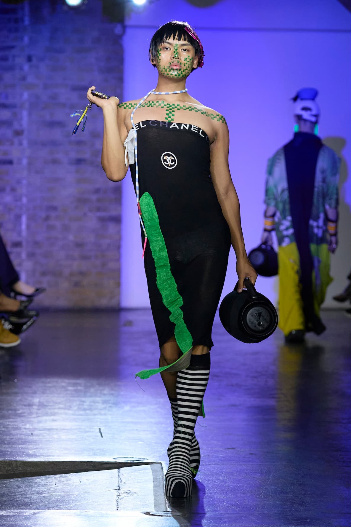 The auditory dimension of the show is equally revolutionary. The JBL handheld freedom speakers wielded by the Tin Can Crew and the Super Scratch Sunday's scratchers create a unique audio experience for the audience. It's a sound clash, a sonic mash-up that perfectly complements the visual extravaganza unfolding on the catwalk.