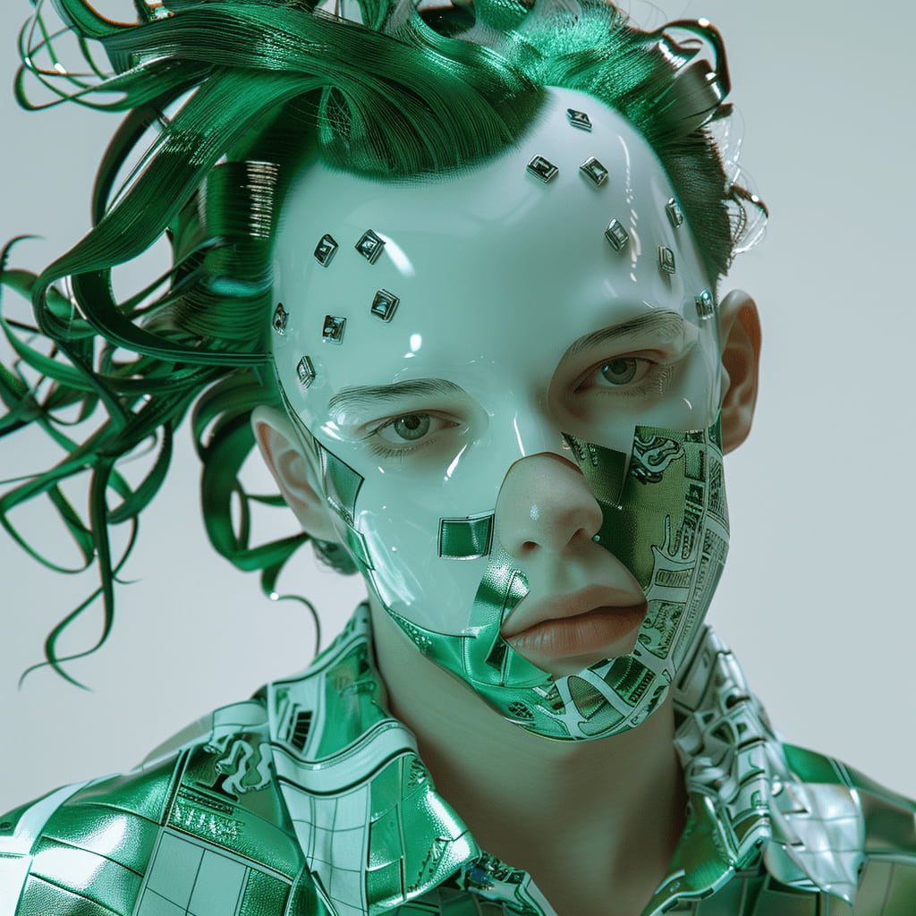 PortrAIts seamlessly merges two worlds: the tangible and the digital. Our muses, dressed in clothes that authentically reflect their true selves, are the focal point both in our physical reality and in the three-dimensional world. We meet Aline, Florian, Ian, Edison, Madeleine, Martina, Lorenzo, and Pannonica, each of whom is represented by a unique blend of personal narrative and artificial intelligence.