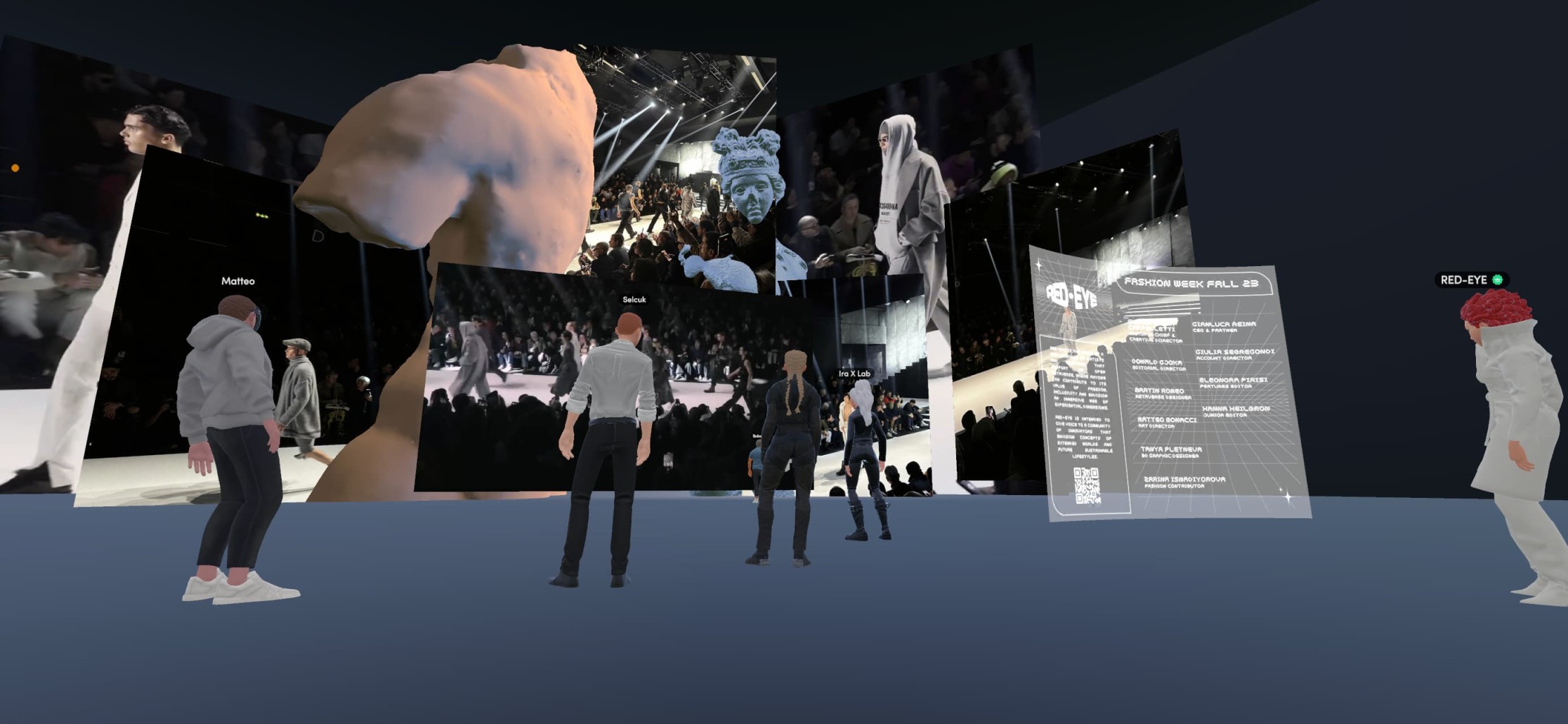 We at RED-EYE had a lot of fun with the new technology, creating dedicated and fully customised virtual environments that matched the theme of the designers collections. The use of live streaming technology from the metaverse also allowed the show to reach a global audience, with people tuning in from all over the world to experience the event in real-time in our shared metazine public space. This made it possible for people who couldn’t physically attend the event to still feel like they were there, experiencing the show firsthand in an immersive way.