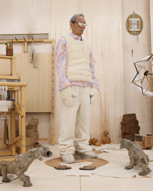 For their first collection "Wing it", the designers focused on innovative patchworking skills. For the last season "Street Vendors", hand weaving was a base and various prints and fabrics were used for making hand-woven garments. Instead, the Fall/Winter 2023 PERMAFROST collection is inspired by the Inuit people living in the permafrost.The Inuits have long sanctified "clothes making" to survive the severe cold. Making clothes has been considered as a sacred task because it is directly related t o survival by thoroughly preventing cold and wind during hunting and preventing water from seeping in. For that reason, Inuits devote effort, time, and craftsmanship in making clothes, and are very proud of it.