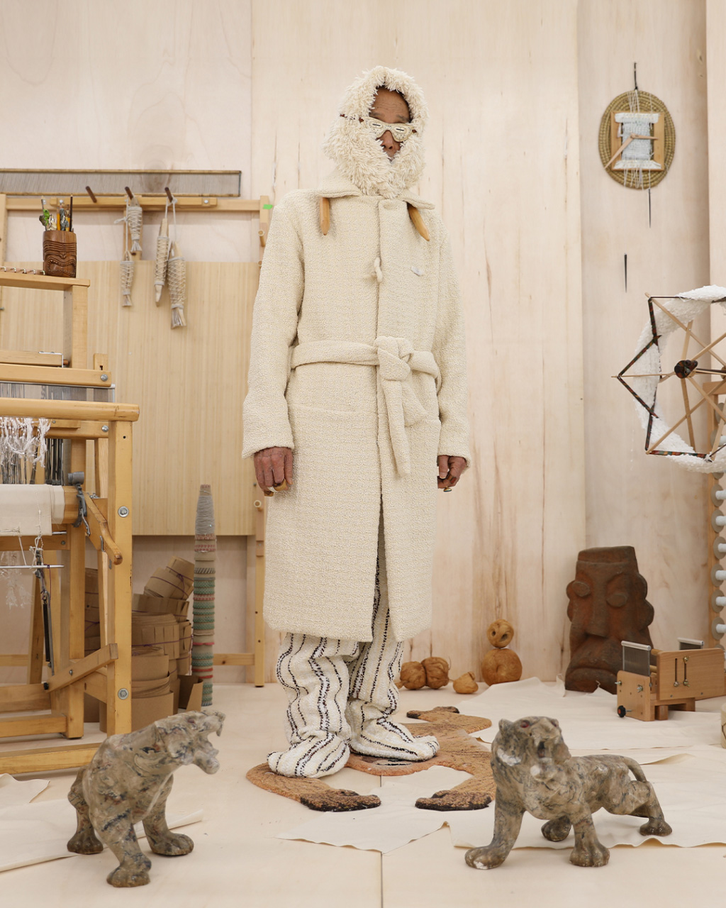 “PERMAFROST” collection was inspired by the Inuit people living in the permafrost. They have long sanctified “clothes making” to survive the severe cold. Making clothes has been considered a sacred task because it is directly related to survival by thoroughly preventing cold and wind during hunting and preventing water from seeping in . For that reason, Inuits devote effort, time, and craftsmanship in making clothes, and are very proud of it. We who make handwoven clothes felt a deep homogeneity in the way Inuit treated clothes, and that was the beginning of the collection.